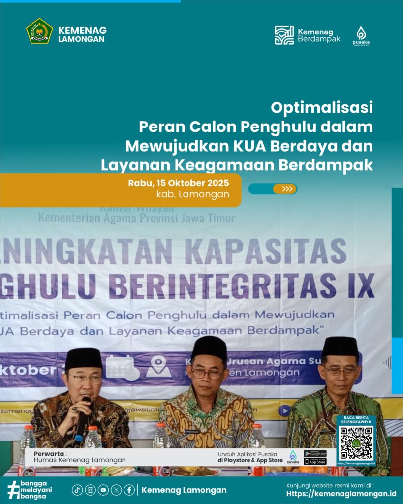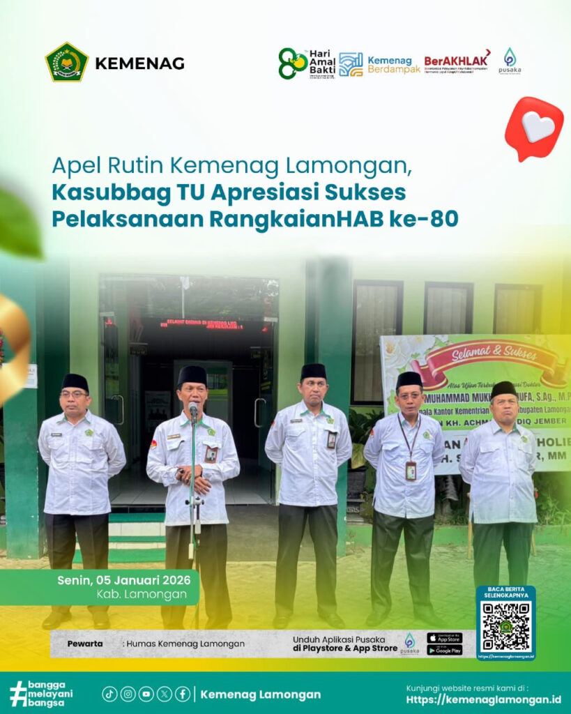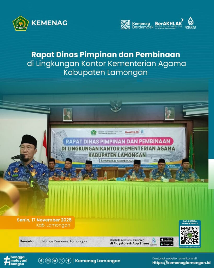Program Zona Integritas merupakan upaya kami untuk menciptakan lingkungan kerja yang bersih, transparan, dan akuntabel. Kami percaya bahwa dengan menerapkan prinsip-prinsip integritas, kami dapat memberikan pelayanan yang lebih baik kepada masyarakat dan meningkatkan kepercayaan publik terhadap institusi kami. Kami mengajak seluruh jajaran Kemenag Lamongan untuk berkomitmen dalam mewujudkan program ini. Melalui kerja sama yang solid, inovasi, dan dedikasi, kami yakin bahwa kita dapat mencapai tujuan bersama dalam menciptakan Kementerian Agama yang lebih baik.