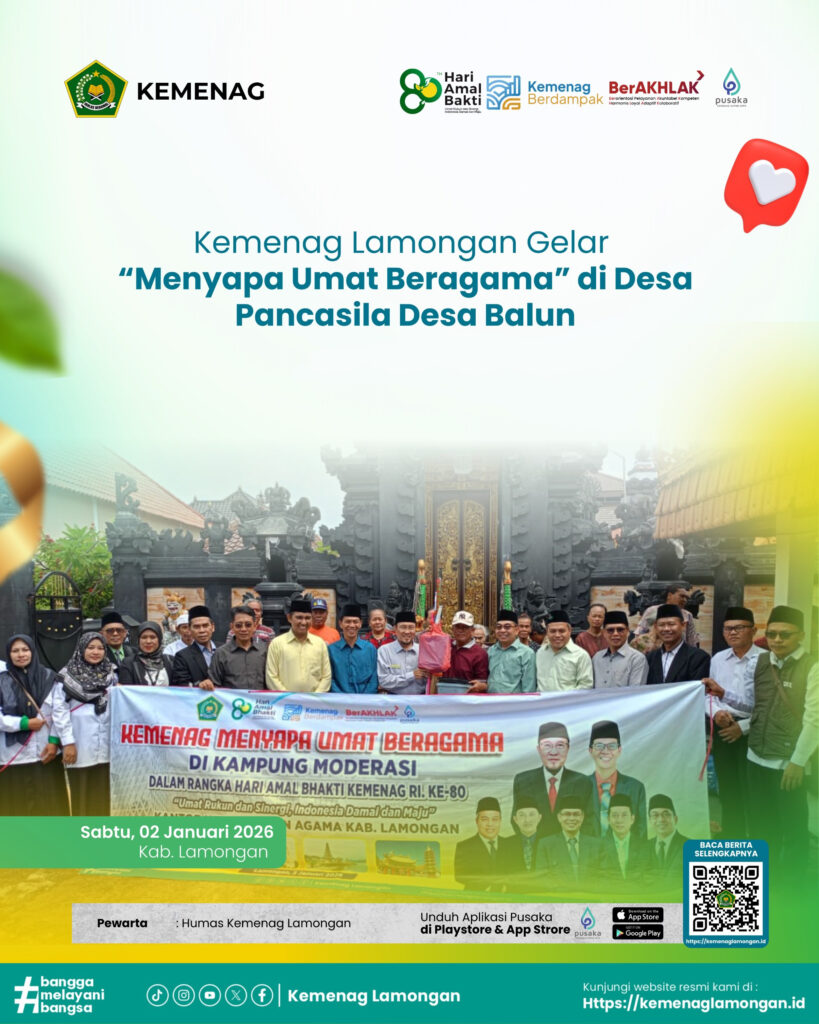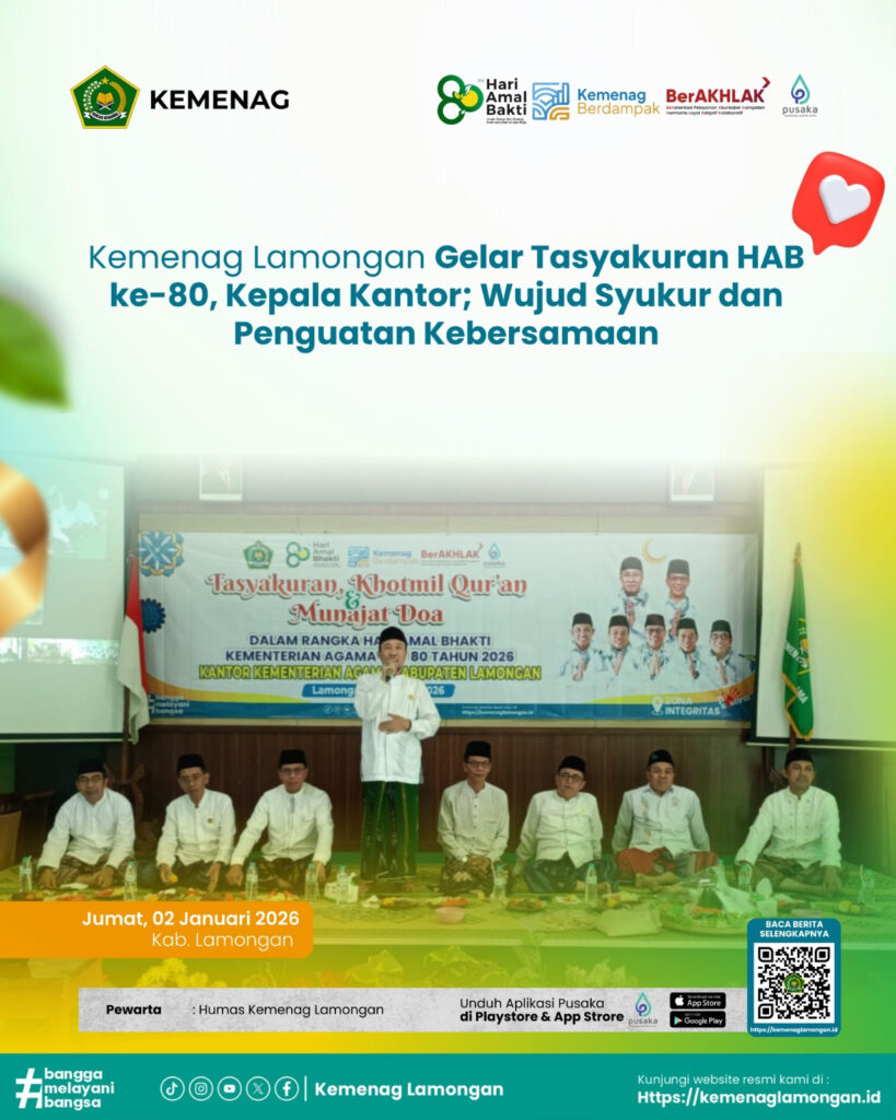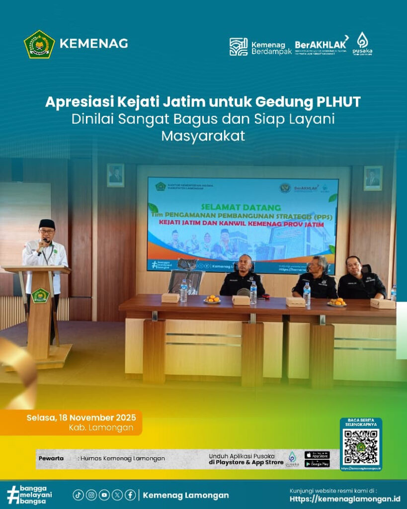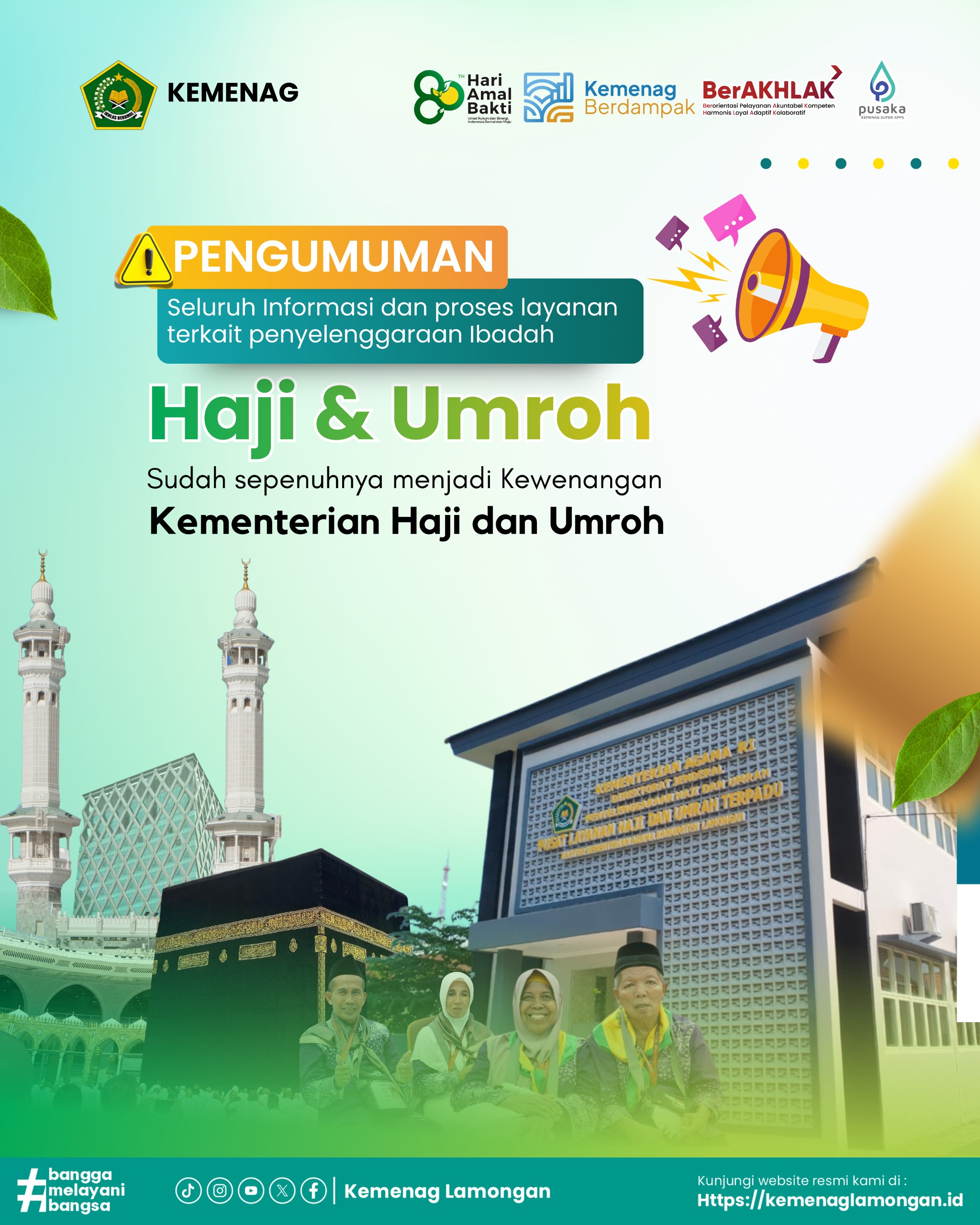 Selamat datang di laman resmi Kementerian Agama Kabupaten Lamongan. Dalam kesempatan ini, kami ingin menyampaikan sambutan dan harapan kami terkait Program Zona Integritas yang sedang kami laksanakan.