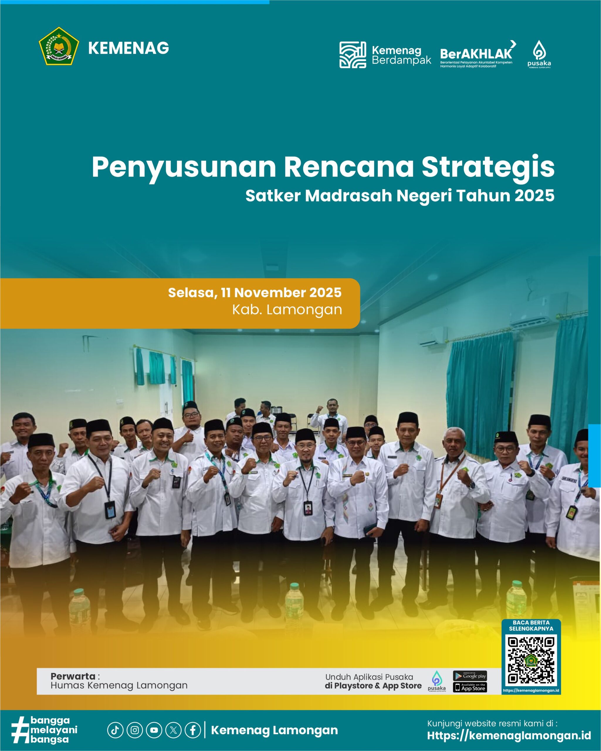 Read MorePenyusunan Rencana Strategis Satker Madrasah Negeri Tahun 2025 Bertempat di aula MAN 2 Lamongan diselenggarakan kegiatan Penyusunan Rencana Strategis Satker Madrasah Negeri Tahun 2025 di lingkungan Kantor Kementerian Agama Kabupaten Lamongan. Hadir mengikuti kegiatan ini Kepala Kemenag, Kasi Pendma, Kepala MAN dan MTsN Lamongan, Perencana Madya dan Perencana Muda, Penjamin Mutu, Ka TU MAN dan…