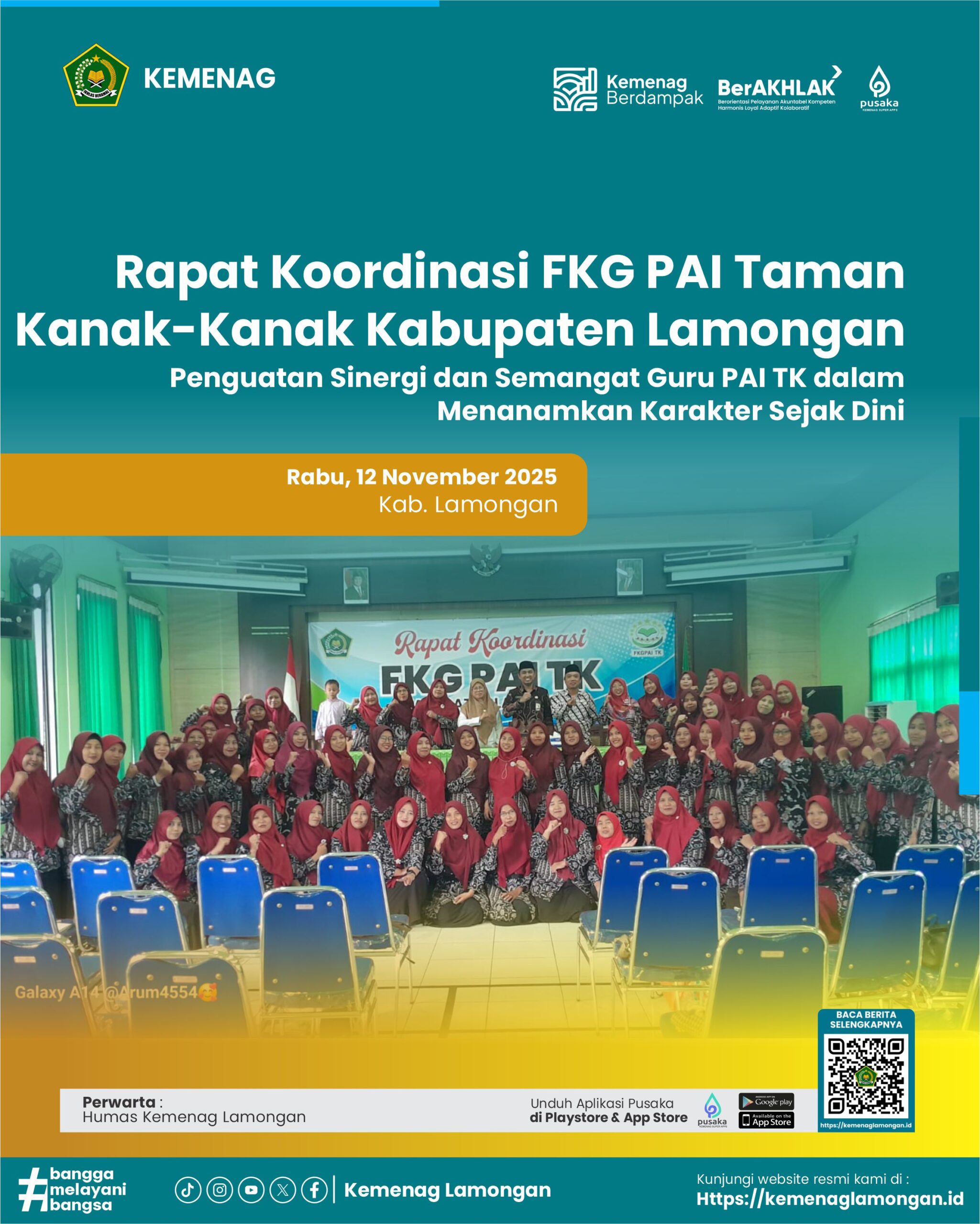 Read MoreRapat Koordinasi FKG PAI Taman Kanak-Kanak Kabupaten Lamongan Penguatan Sinergi dan Semangat Guru PAI TK dalam Menanamkan Karakter Sejak Dini Lamongan – Seksi Pendidikan Agama Islam (PAIS) Kantor Kementerian Agama Kabupaten Lamongan menggelar Rapat Koordinasi Forum Komunikasi Guru (FKG) PAI Taman Kanak-Kanak pada Rabu (12/11), bertempat di Aula Kankemenag Lamongan. Kasi PAIS, H. Yitno Utomo,…