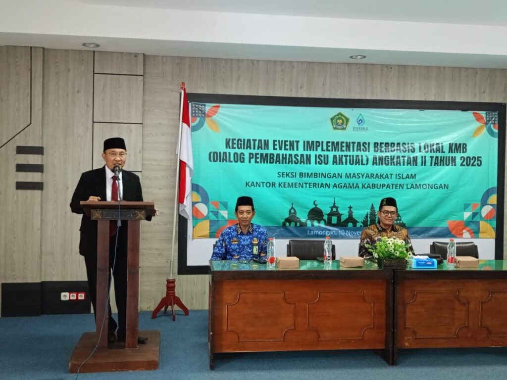 Lamongan — Seksi Bimas Islam Kantor Kementerian Agama Kabupaten Lamongan menyelenggarakan kegiatan Event Implementasi Berbasis Lokal KMB dan Dialog Pembahasan Isu Aktual Angkatan II Tahun 2025, pada Senin (10/11/2025).