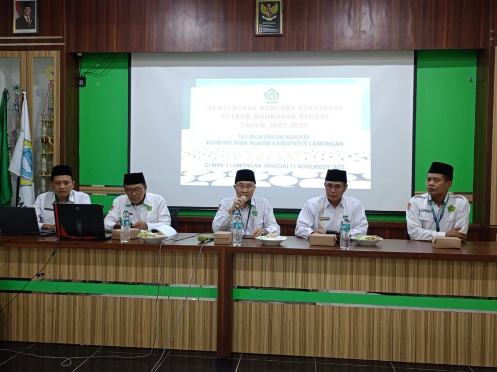 Bertempat di aula MAN 2 Lamongan diselenggarakan kegiatan Penyusunan Rencana Strategis Satker Madrasah Negeri Tahun 2025 di lingkungan Kantor Kementerian Agama Kabupaten Lamongan. Hadir mengikuti kegiatan ini Kepala Kemenag, Kasi Pendma, Kepala MAN dan MTsN Lamongan, Perencana Madya dan Perencana Muda, Penjamin Mutu, Ka TU MAN dan MTs se- Kabupaten. Lamongan.
