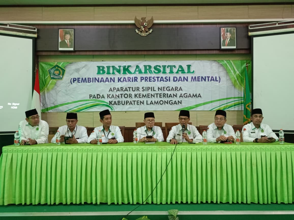Read MoreKankemenag Lamongan Gelar BINKARSITAL untuk Perkuat Integritas dan Kinerja ASN Lamongan (Humas) – Kantor Kementerian Agama Kabupaten Lamongan menyelenggarakan kegiatan BINKARSITAL (Pembinaan Karier, Prestasi, dan Mental) yang diikuti oleh Kepala Kantor Kemenag Kabupaten Lamongan, Kasubbag Tata Usaha, jajaran Kepala Seksi, Penyelenggara Zakat dan Wakaf, Pengawas Madrasah Tingkat Menengah, serta seluruh Aparatur Sipil Negara (ASN) pada…