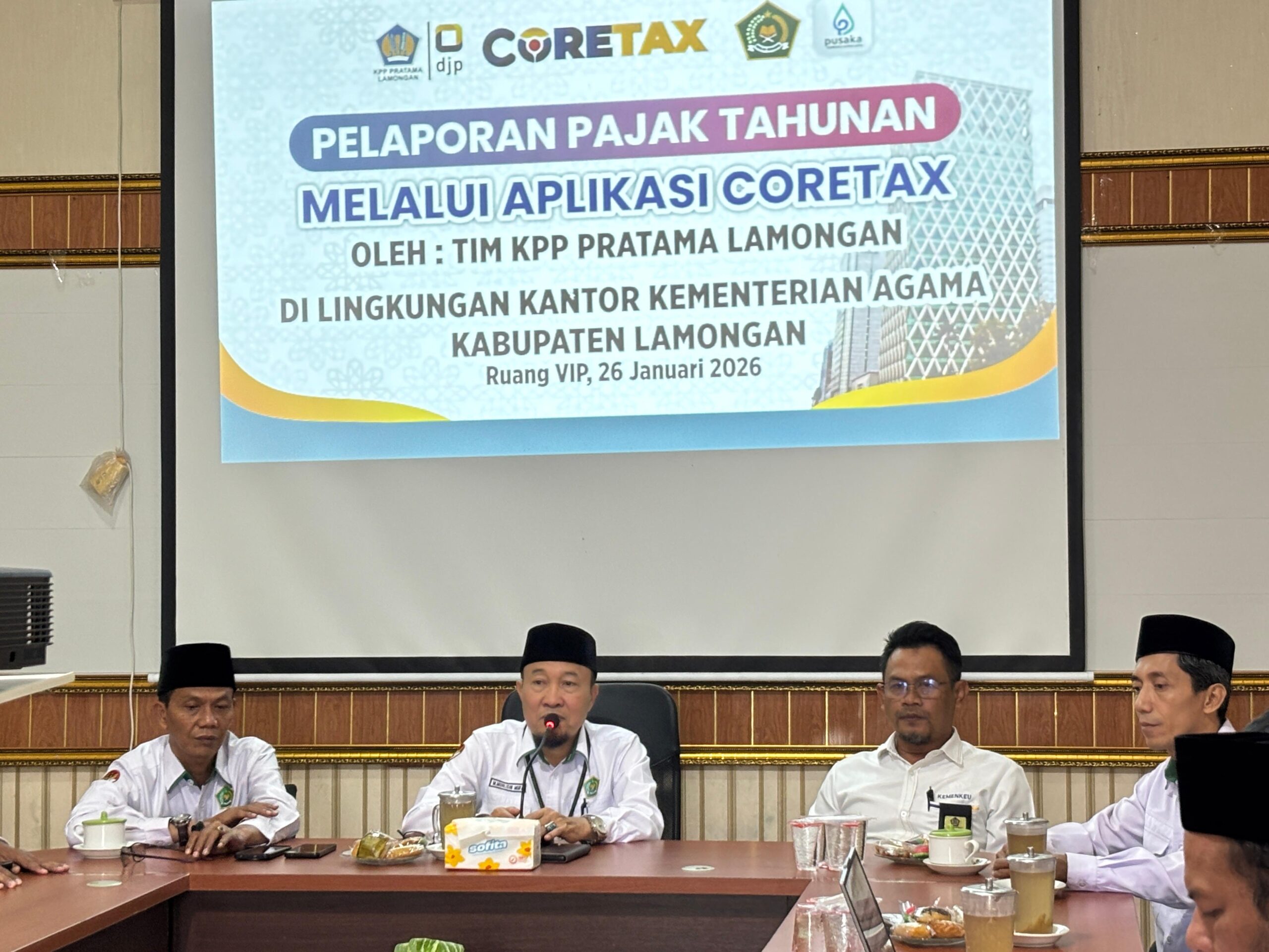 Read MoreKemenag Lamongan Selenggarakan Sosialisasi Pelaporan Pajak Tahunan Melalui Aplikasi Coretax Lamongan – Bertempat di Ruang VIP Kantor Kementerian Agama Kabupaten Lamongan, diselenggarakan kegiatan Sosialisasi Pelaporan Pajak Tahunan melalui Aplikasi Coretax. Kegiatan ini diikuti oleh Kepala Kankemenag Kabupaten Lamongan, Kasubbag Tata Usaha, Tim KPP Pratama Lamongan, serta para operator satuan kerja (satker), pada [hari/tanggal]. Kepala Kantor…