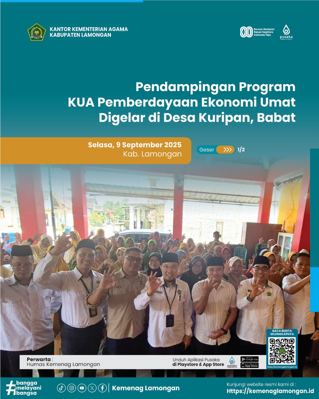 Pendampingan Program KUA Pemberdayaan Ekonomi Umat Digelar di Desa Kuripan, Babat Lamongan, 9 September 2025 – Bertempat di Balai Desa Kuripan, Kecamatan Babat, telah dilaksanakan kegiatan Pendampingan Program KUA Pemberdayaan Ekonomi Umat. Kegiatan ini bertujuan untuk mendorong kemandirian ekonomi umat melalui sinergi antara Kantor Urusan Agama (KUA), pemerintah desa, dan masyarakat. Acara ini dihadiri oleh…